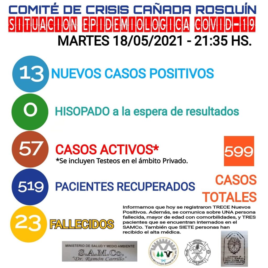 En tanto siete rosquinenses recibieron el alta y tres pacientes permanecen internados en el SAMCo local.-