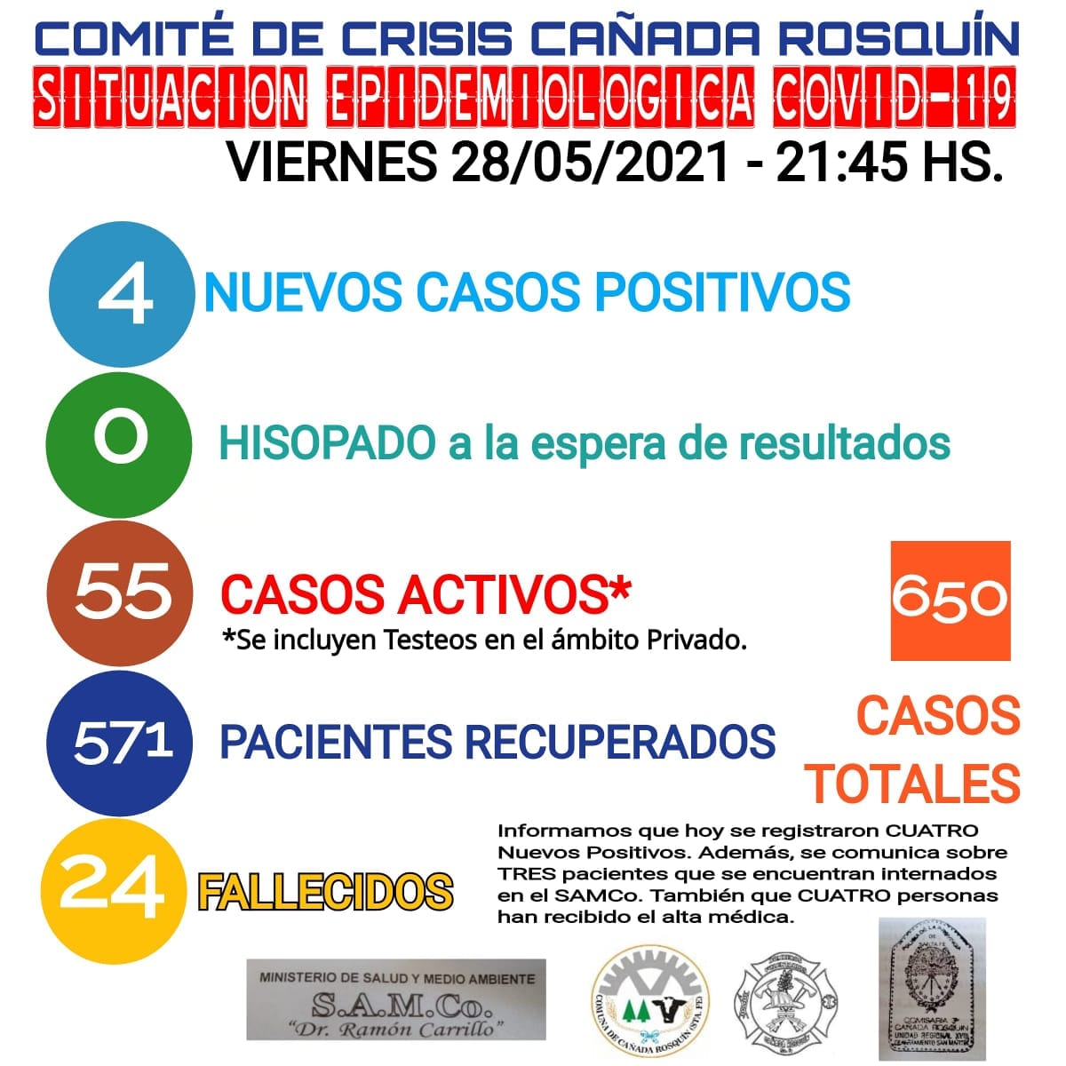 Durante este viernes se informaron cuatro contagios de Covid-19 en Cañada Rosquín.-