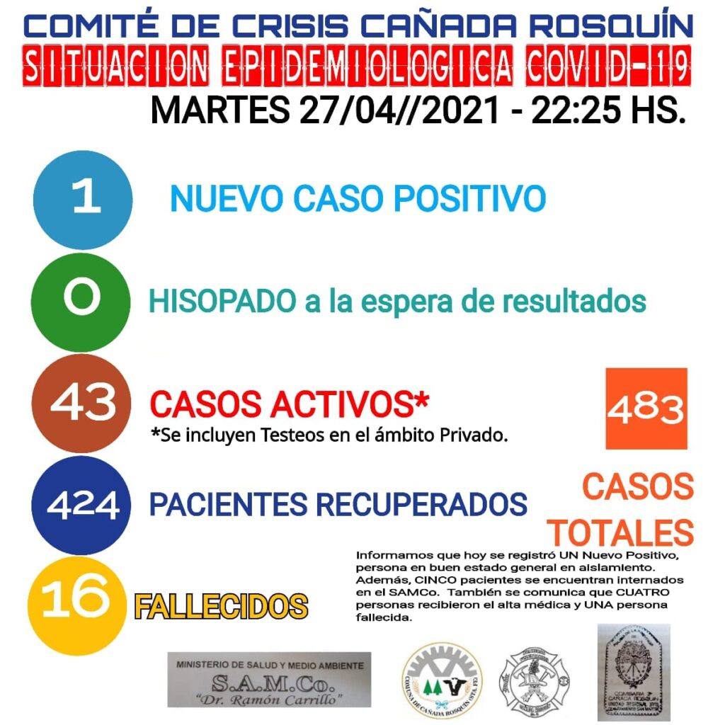 Cañada Rosquín reportó una persona fallecida y un nuevo contagio
