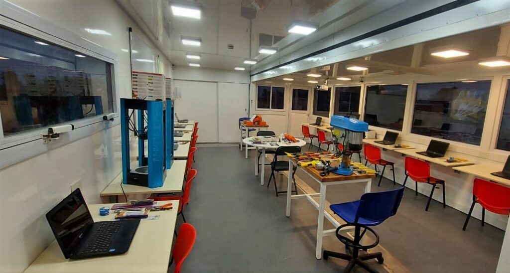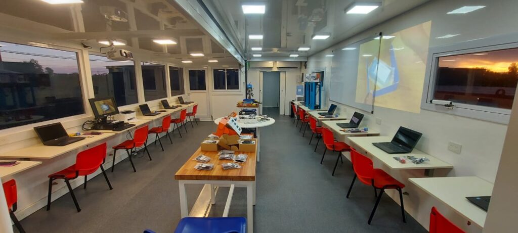 En línea con esto, sostuvo: «Esta aula móvil es muy particular porque incluye toda la tecnología 4.0 y tenemos que preparar a los chicos para la cuarta revolución industrial que ya la estamos viviendo. Hablemos de Inteligencia Artificial pero sin olvidarnos del entorno porque desde acá podemos crear un sistema de riego para las huertas comunitarias, un control de temperatura o un control de humedad…pero que lo hagan los estudiantes de acá. Tenemos que complementar aprendizajes».