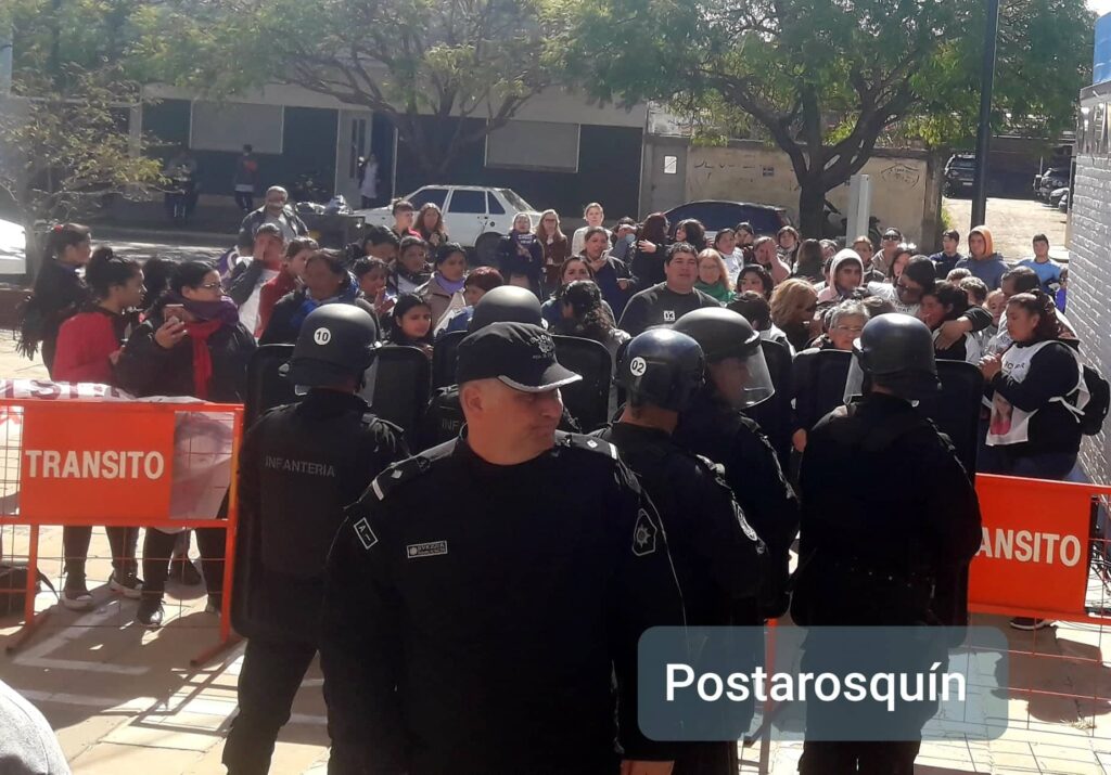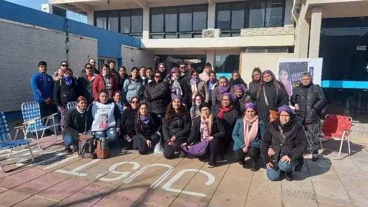 Cómo desde el primer día mujeres de Mumalá Cañada Rosquin y Casas aguardaban la sentencia en la explanada de la torre judicial junto a familiares de Vero; movilizadas por el resultado tras más de dos años en los que no bajaron los brazos en el reclamo de justicia.
