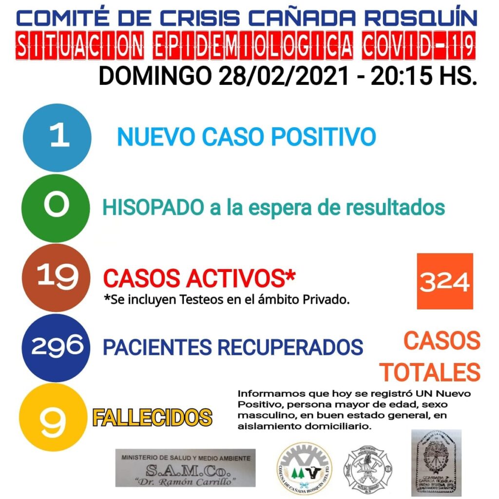 Es así que Cañada Rosquín se mantiene un acumulado de 324 casos registrados.-