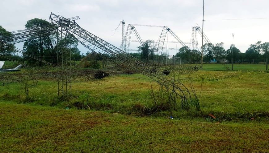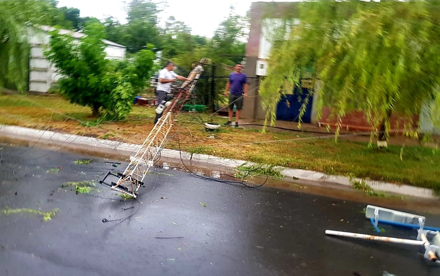 Asimismo, el presidente comunal subrayó: «El parabólico que estaba para terminar el tinglado en el club lo destrozó todo. También se rompió uno de los transformadores grandes que abastece a medio pueblo de corriente, las columnas de cemento cayeron sobre el transformador y además tumbó la antena de televisión».