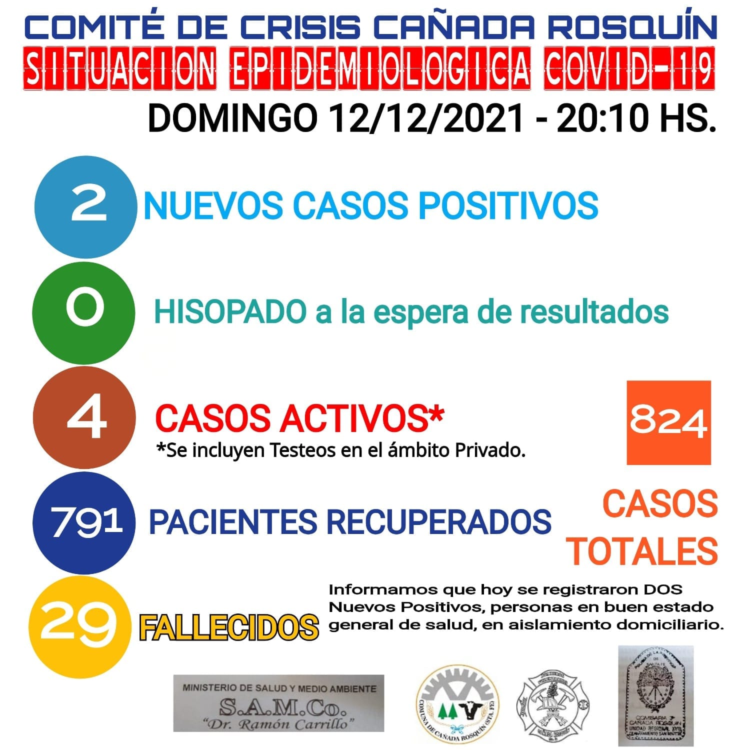 Este domingo 12 de diciembre desde un parte oficial del Comité de Crisis se informó que se registraron dos nuevos contagios. –
