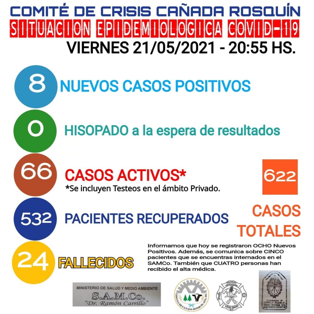 Este viernes Cañada Rosquín reportó 8 nuevos positivos
