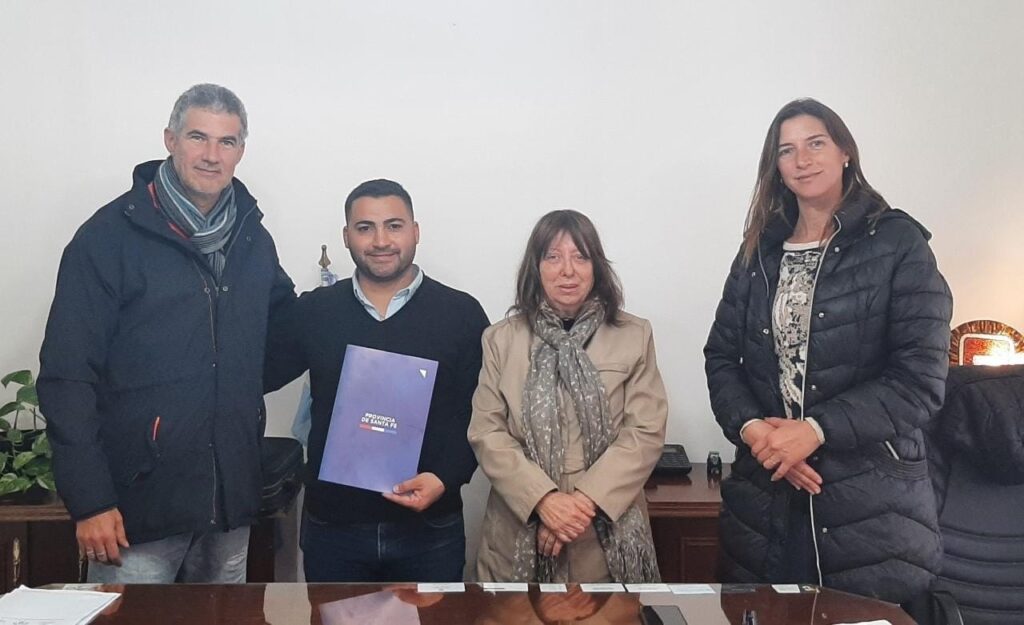 El Secretario de Comunas Carlos Kaufmann junto a Cristina Berra, hizo entrega de la documentación respectiva al presidente comunal Alan Tramannoni .