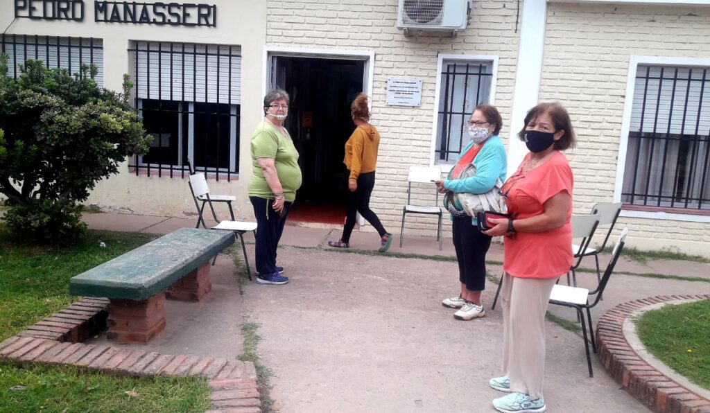 Mientras los indicadores hablan de un mayor nivel de alerta, este miércoles se vacunó a mayores de 65 en el Centro Comunitario de Cañada Rosquín.- Se completó también con mayores de 70 y de 80.-