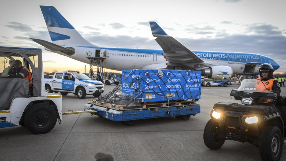 La aeronave aterrizó este martes en el aeropuerto internacional de Ezeiza con 400.000 dosis del componente 2 de Sputnik V, 81.850 del componente 1 y 300 litros del principio activo para comenzar la producción local de la vacuna.