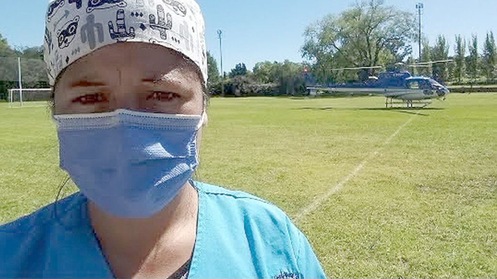 “Misión cumplida”, resume Vanesa Saldaño, la enfermera del Centro de Atención Primaria de Salud de Villa Yacanto – Córdoba – tras bajar del helicóptero que este viernes la trasladó hasta lo alto del cerro Champaquí para colocar las segundas dosis de Sputnik V a 18 pobladores y otras 10 de AztraZeneca y hasta llevó una vacuna del calendario oficial para una niña de 11 años.-