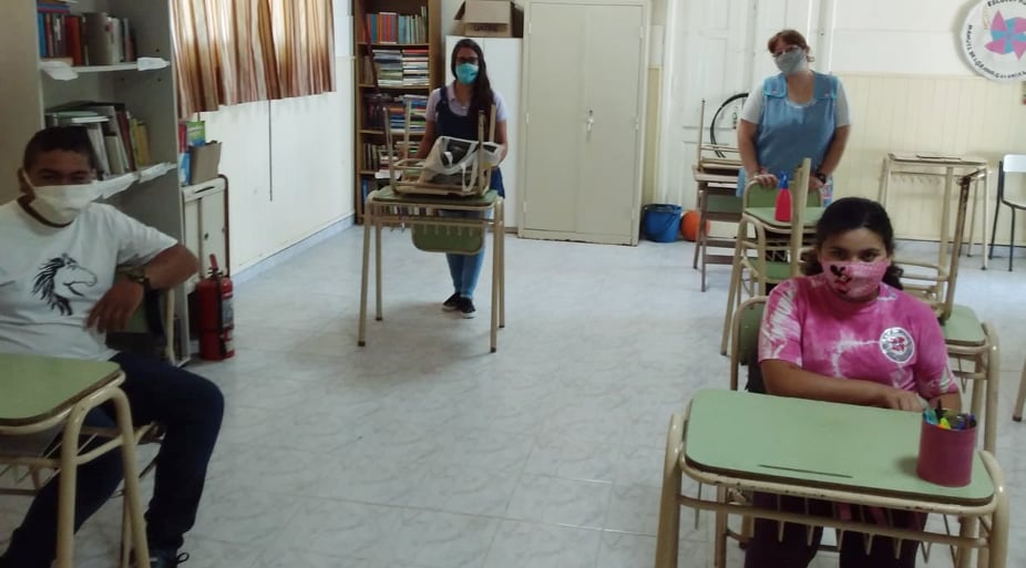 «Significa el retorno a la jornada escolar organizada de manera diferente a la tradicional; con recreo a media mañana de treinta minutos para reforzar la desinfección del espacio» continuó.-