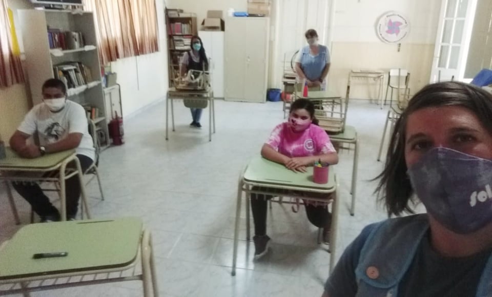 «Es una jornada maravillosa y con responsabilidades…el regreso al aula del grupo prioritario que está conformado por dos estudiantes: Nadia y Gastón, alumna y alumno de 7° grado» destacó Sol Zuiani, directora de la escuela en diálogo con Postarosquín.-