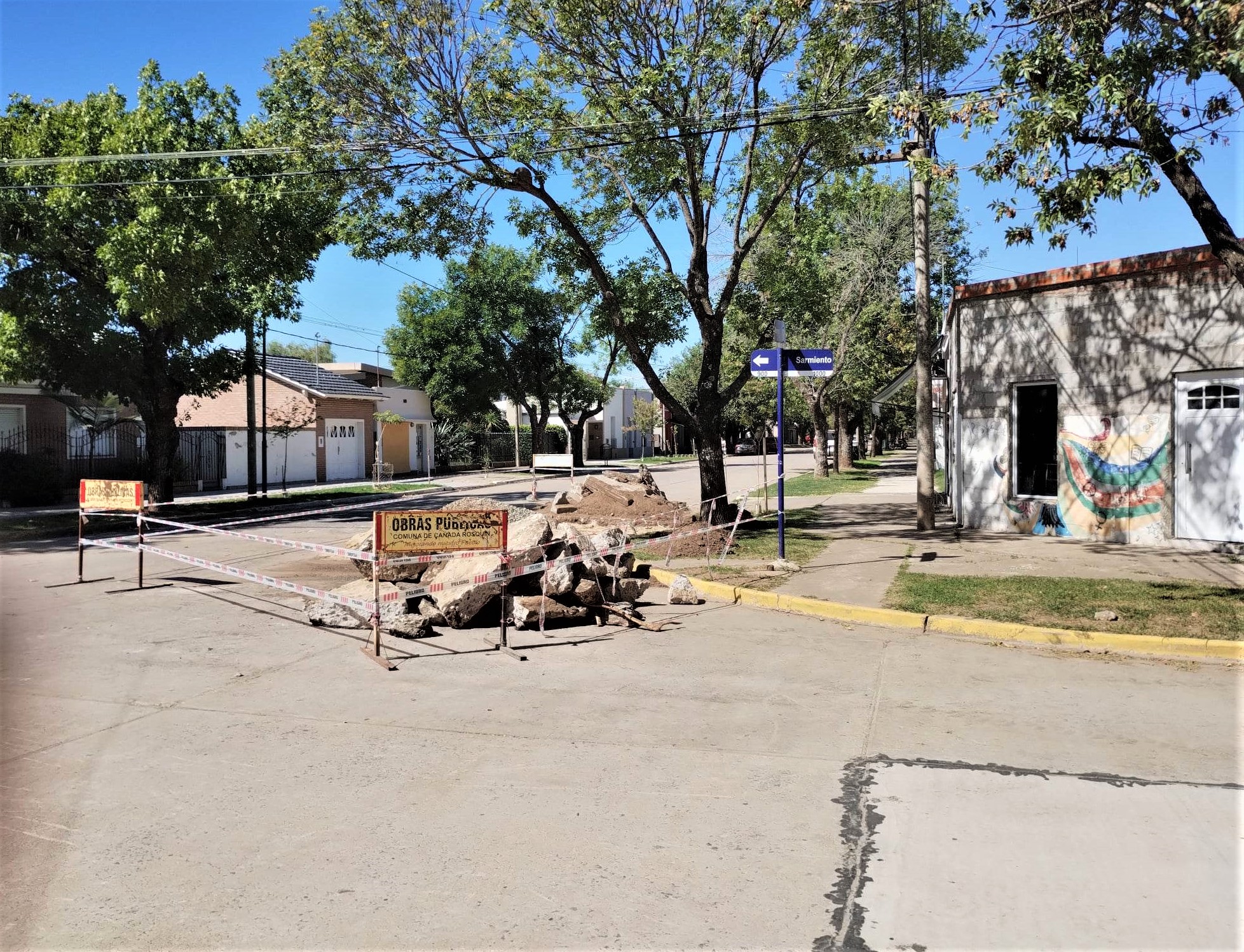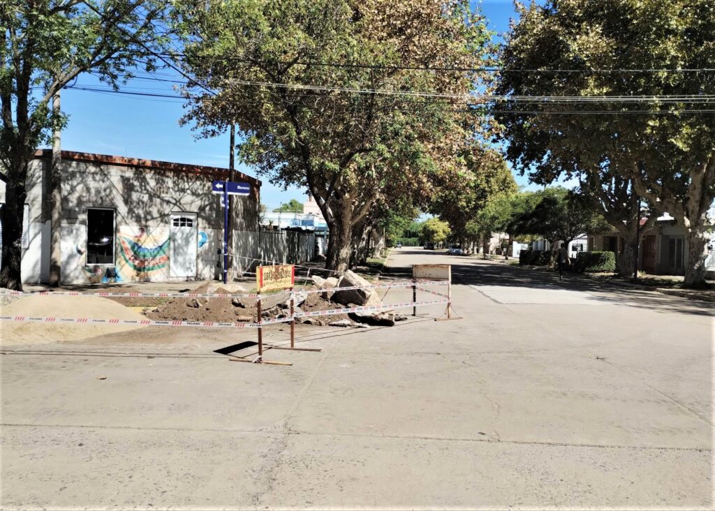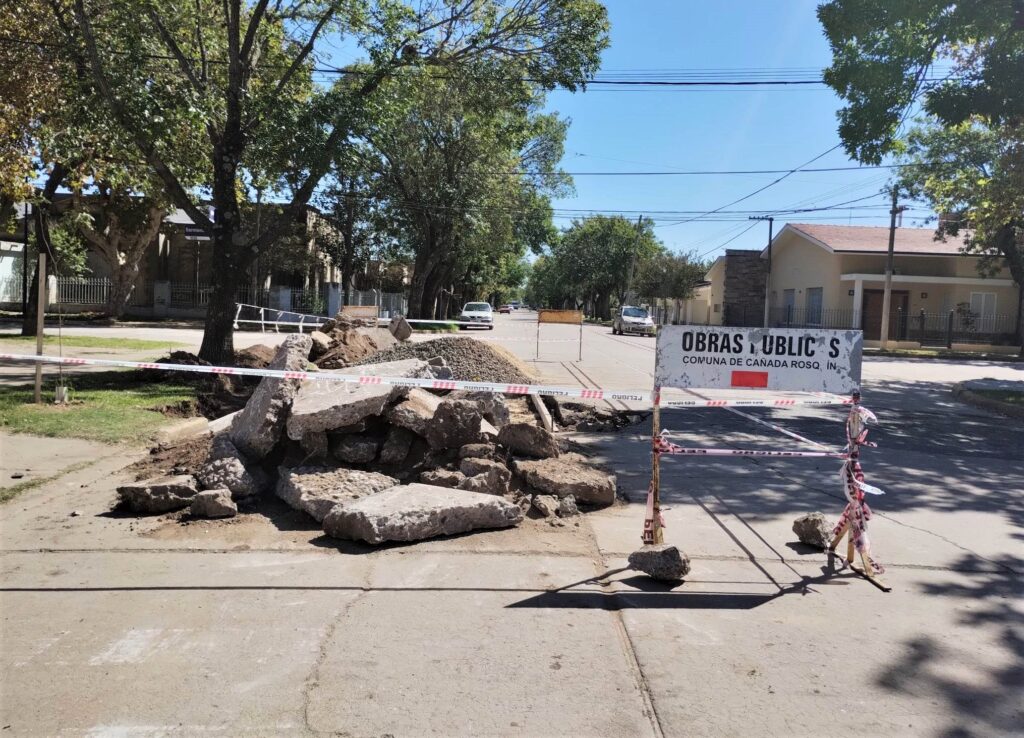 La Comuna de Cañada Rosquin comenzó este lunes con el recambio de paños de hormigón en la esquina de Moreno y Sarmiento, una zona muy transitada de la localidad.