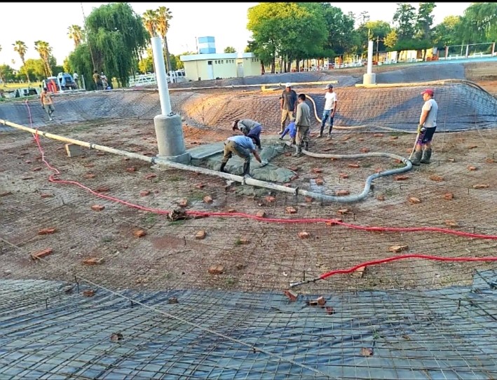 Esta semana, se llevó a cabo un paso importantísimo, cómo fue la colocación del cemento en las nuevas piletas. “Se tuvieron que coordinar muchas cosas para que se pueda hacer la obra con un hormigón especial en la que trabajó una firma de El Trébol y una de Rosario que venía con las bombas para desparramar el cemento. El trabajo de coordinación entre las empresas fue enorme y la Comuna se dedicó a pleno al proyecto. El hormigón hubo que colocarlo todo en pocas horas y quedó fantástico. El balneario quedará hermoso, de color arena en toda una manzana”, destacó Arce.